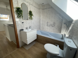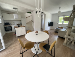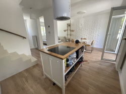 Elle se compose d'un bel espace de vie lumineux avec salon-séjour traversant, offrant une atmosphère chaleureuse et conviviale. La cuisine équipée ouverte s'intègre parfaitement à cet espace, idéale pour partager des moments en famille ou entre amis.