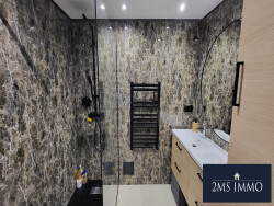 - une entrée, - une cuisine aménagée et équipée toute neuve et son cellier, - un beau salon lumineux et sa salle à manger, - 3 belles chambres, - une très belle salle de douches, - un WC indépendant avec WC suspendu.