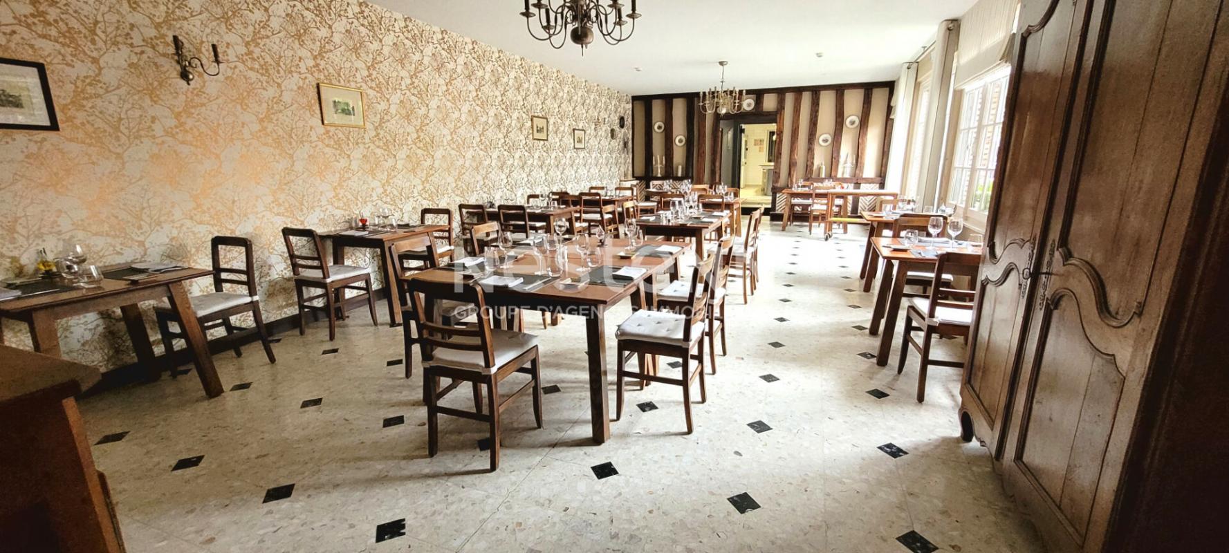 Rez-de-chaussée : une grande salle de bar, une cuisine, un dégagement avec WC et lavabos, une salle de restaurant spacieuse, ainsi qu'une salle de banquets. Une cave partielle est également incluse.