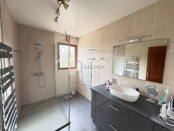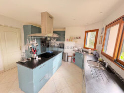 Située à proximité immédiate du centre-ville de Muzillac, cette maison contemporaine signée "DORSO" de 175 m² habitables offre un cadre de vie confortable avec accès piéton aux commerces et services. Elle se compose d'un hall d'entrée, d'un salon-séjour de 54 m² avec poêle à bois. Cuisine moderne avec arrière-cuisine et d'une suite parentale au rez-de-chaussée. Trois belles chambres, bureau et salle de bains neuve à l'étage. Confort assuré par une chaudière gaz de ville récente (2024). pour la production d'eau chaude, du chauffage au sol au RDC, et des radiateurs à l'étage. Sous-sol complet avec garage double, rangement, cellier et atelier. A l'extérieur, parc clos et arboré d'environ 2 200 m², abri de jardin et double terrasse. (3.80 % honoraires TTC à la charge de l'acquéreur.)