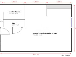 Celui-ci est composé d'une pièce de vie exposée Ouest avec coin cuisine aménagé, d'une salle d'eau ouverte. et d'un WC indépendant.