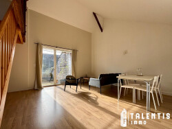 Au 2ème étage et dernier étage d'un immeuble, ce T3 meublé allie charme et luminosité grâce à sa belle hauteur sous plafond. Il se compose d'une pièce de vie ouverte sur une grande terrasse, d'une cuisine aménagée avec coin cellier, d'une chambre au rez-de-chaussée avec accès direct à la terrasse, d'une salle d'eau avec emplacement lave-linge, ainsi que d'une mezzanine modulable en bureau ou coin nuit supplémentaire.