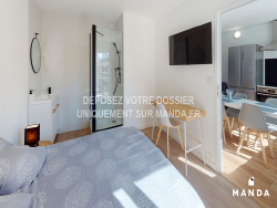 A deux pas du Tram Romanet, Manda propose une chambre à louer dans une colocation boulevard du Tertre. Situé au 3ème étage, cet appartement refait à neuf se partage entre 5 colocataires et vous sera loué meublé.