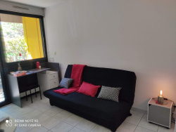 REF 24022 - AGENCE LUGA IMMOBILIER NARBONNE / SECTEUR POLY / RESIDENCE LE CAMPUS STUDIO MEUBLE AVEC TERRASSE ET PLACE DE STATIONNEMENT PRIVEE - Ce studio de 20.09m2 situé au rez-de-chaussée d'une résidence sécuriée se compose d'une entrée avec placard, kitchenette aménagée et équipée (plaque de cuisson, hotte et frigo top), une pièce de vie avec placard et terrasse de 5.02m2, une salle d'eau avec WC. RESIDENCE SECURISEE LOUÉ : 355EUR+40EUR de charges, WI-FI, provision d'eau comprise - TF 2023 656 EUR DONT 103EUR DE TOM IDEAL INVESTISSEMENT - EMPLACEMENT RECHERCHÉ www.agence-luga.com