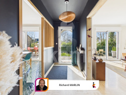 Cette maison néo-bretonne, rénovée avec goût, mêle harmonieusement le charme des matériaux d'origine et un confort moderne soigneusement pensé. Située dans un environnement paisible, tout près des sentiers de randonnée et à 800m à pied de la plage de Tahiti à Névez, elle offre un cadre de vie idéal pour celles et ceux qui recherchent tranquillité, nature et volumes lumineux. Pour accéder à l'habitation, une belle terrasse en bois exotique, aménagée sur deux niveaux, accueille les visiteurs dans une atmosphère chaleureuse et soignée. Le niveau inférieur, agrémenté de bancs et d'assises intégrés, crée un espace convivial où l'on peut se détendre ou partager un moment en extérieur, tandis que le niveau supérieur prolonge harmonieusement les pièces de vie et permet de profiter pleinement de la lumière et du calme du jardin. Au rez-de-chaussée, une entrée généreuse mène à un salon-séjour baigné de lumière, une cuisine séparée, aménagée et équipée, dont le sol en zellige apporte une touche de charme supplémentaire, ainsi qu'une chambre de plain-pied, une salle de bains et des WC indépendants. À l'étage, trois chambres confortables toutes orientées Sud-Ouest, un bureau, un dressing, une salle d'eau avec WC complètent l'ensemble. Le sous-sol total de 76 m2 accueille un garage, une buanderie et un atelier. On apprécie particulièrement la qualité de la rénovation, le charme typique de l'architecture néo-bretonne, la luminosité des pièces et la sérénité du secteur, renforcée par la proximité immédiate du littoral. Richard Marlin se fera un plaisir de vous ouvrir la porte de votre future demeure... Les informations sur les risques auxquels ce bien est exposé sont disponibles sur le site Géorisques : www.georisques.gouv.fr - Annonce rédigée et publiée par un Agent Mandataire -