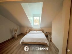 Caractéristiques principales : Duplex de 110 m2 Grand salon de réception de 43 m2 Deux chambres + mezzanine Salle de bain à rénover 1 Cave et 2 greniers Quartier Tribunal - Neustadt 4e étage (sans ascenseur) Les photos d'aménagement sont générées par Intelligence artificielle.