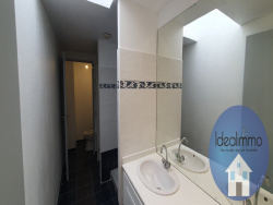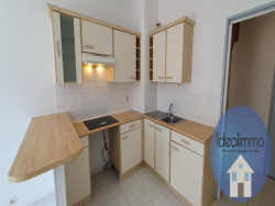 Au dernier étage d'un bel immeuble bourgeois « Palais Offenbach », agréable 3 pièces duplex de 63 m2 (76 m2 habitables). Il se compose d'une entrée, d'un séjour lumineux avec coin cuisine, d'une salle d'eau avec WC, et à l'étage, de 2 chambres avec rangements, salle d'eau et WC. En bon état, proche tramway, commerces et centre-ville. Loué avec 3 caves en sous-sol.