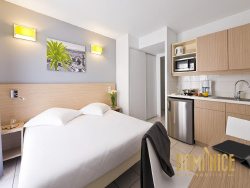 Special Investisseur, situé à 50 mètres de la mer et de la Promenade des Anglais, au pied du tramway, dans une résidence de tourisme, decouvrez un studio de 18m2 meublé en très bon état et géré entièrement par Pierre & vacances. Il comprend un séjour, un coin cuisine, ainsi qu'une salle de douche avec toilettes. La résidence offre divers services, tel que le parking sécurisé dans la résidence, une piscine au sein de la copropriété, une supérette, une laverie...Le bien est vendu loué avec un bail en cours jusqu'au 1.10.2031 avec un loyer garanti de 391 euros par mois révisé chaque année..Les charges de copropriétés s'élèvent à 22 euros/mois, avec une taxe foncière à 372 euros/an. Cet investissement offre une rentabilité de 4,1 %.Copropriété de 77 lots principaux. Pas de procédure en cours.