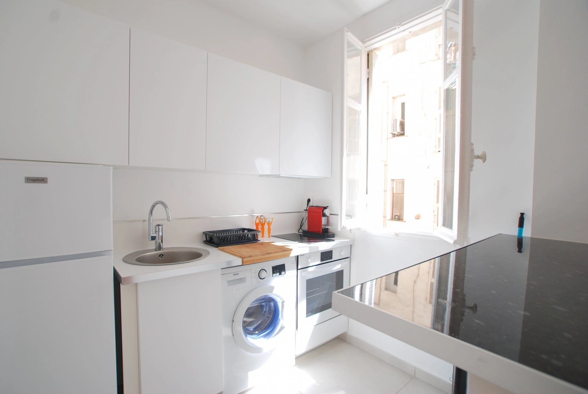 Location bail mobilité (du 24/12 au 31/05). Dans une résidence de standing et sécurisée, grand F1 en rez-de-jardin meublé de 34 m2 avec terrasse de 18 m2 aménagé. Séjour avec coin nuit isolé et cuisine américaine équipée, salle de douche avec WC, entrée avec placards. Climatisé, double vitrage. Loyer : 950 EUR tout compris (eau, électricité, internet) Dépôt de garantie bail étudiant : 1800 EUR Honoraires d'agence : 444 EUR TTC