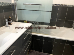 Nice Ouest,- Grand-Arénas, dans un quartier en plein essor et une copropriété fermée, bien tenue et avec gardien, en retrait de la circulation, proche gare multimodale, tramway, autoroute, crèche et école, lumineux 3 pièces traversant de 62 m2 en étage élevé. Cet appartement se compose d'un hall avec placard, séjour ouvrant sur une terrasse Sud-Ouest de 10 m2 avec vue citadine et mer, cuisine indépendante, deux chambres avec chacune un placard (dont une très grande, avec en plus une loggia), salle de bains, wc indépendants avec rangements. Eau froide, eau chaude, chauffage et gaz collectifs, soit charges courantes actuelles pour l'ensemble (tout, sauf électricité) environ 310 euros / mois. Classe énergie: D (209), GES : D (41). Estimation des coûts annuels d'énergie du logement compris entre 1143 EUR et 1547 EUR, prix moyens des énergies indexés sur les années 2021, 2022 et 2023, abonnements compris. Vensu avec une cave. Possibilité d'achat en supplément d'un garage en sous-sol. Nombreux parkings collectifs dans la copropriété et juste à l'extérieur de celle-ci. Les informations sur les risques auxquels ce bien est exposé sont disponibles sur le site Géorisques www.georisques.gouv.fr. EXCLUSIVITE Midem Immobilier 04 93 725 919 ou Jean-Pierre CHAPPE 06 22 04 58 45