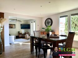L'entrée chaleureuse vous mène vers un vaste séjour climatisé, qui s'ouvre sur un balcon d'environ 11 m² exposé plein sud.