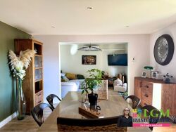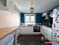 La cuisine équipée, moderne et fonctionnelle, complète l'espace de vie. Un couloir avec placard conduit aux deux chambres, dont l'une disposant d'un dressing, une salle de bains et des toilettes séparés.