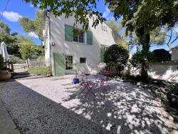 À l'extérieur, le jardin est arboré et comporte une piscine. Le jardin est clôturé avec une partie en Clapas.