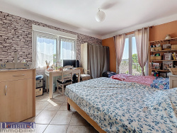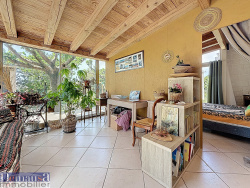 Une véranda d'environ 25 m2 vient enrichir les volumes et peut aisément devenir une seconde pièce de vie, un espace détente ou un bureau. Actuellement, les propriétaires ont fait le choix d'y aménager une chambre, selon leurs besoins.