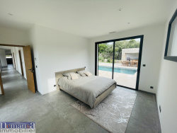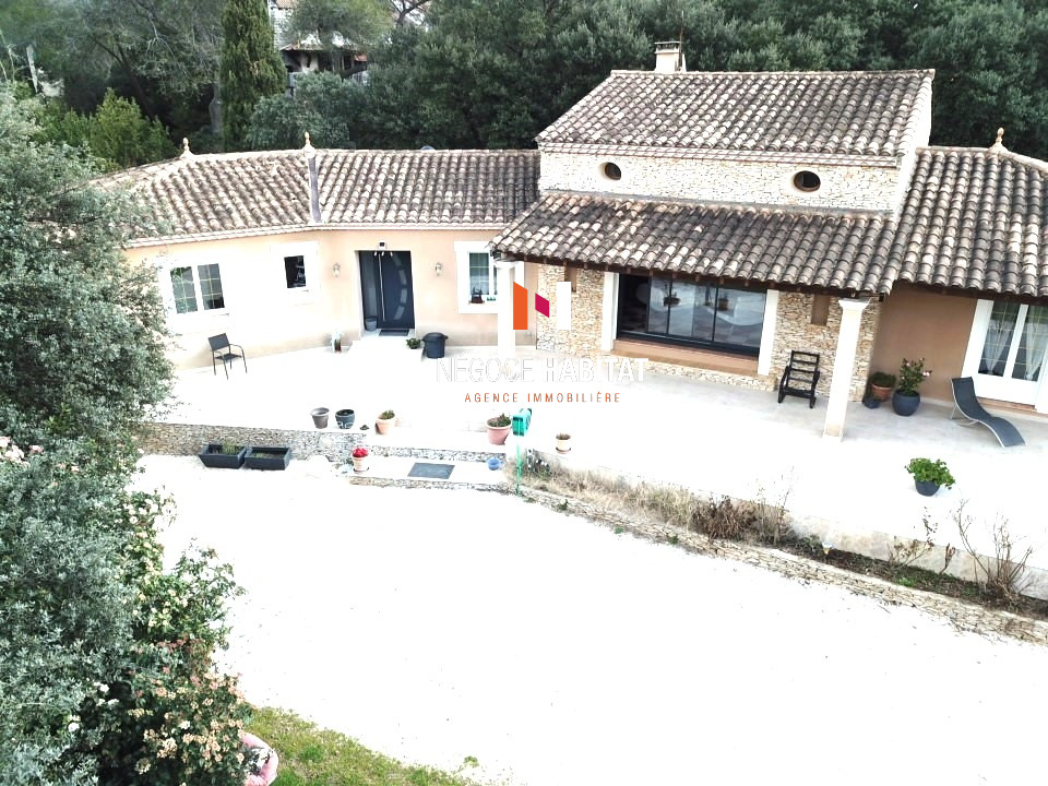 Nous sommes ravis de vous présenter cette somptueuse propriété contemporaine, idéalement située sur les collines de Nîmes. Érigée sur une parcelle de 3500 m2, cette villa offre un cadre de vie exceptionnel, alliant confort, élégance et tranquillité. Construite en 2022, cette villa spacieuse s'étend sur une superficie habitable de 338 m2. Dès votre entrée, vous serez séduit par un vaste séjour salle à manger de 100 m2, baigné de lumière naturelle, agrémenté d'une cuisine Nef entièrement équipée. Les grandes baies vitrées à galandage vous permettent de profiter à un accès direct à une magnifique terrasse. La villa principale, d'une superficie de 215 m2, comprend un espace de vie comprenant le séjour/cuisine, véritable coeur de la maison. Vous y trouverez également une suite parentale avec une chambre spacieuse, un dressing fonctionnel et une salle de bains privative. De plus, trois chambres supplémentaires, correspondent respectivement à 14 m2, 15 m2 et 16 m2, ainsi qu'une seconde salle de bains, vous offriront un espace confortable et accueillant pour toute la famille. Le niveau inférieur de la maison propose également une dépendance de 120 m2 habitables, accessible soit par l'intérieur de la maison, soit de manière indépendante grâce à son propre portail. Cet espace polyvalent peut être aménagé selon vos besoins et peut servir de bureau, d'espace de loisirs ou même de logement pour les invités. De plus, la propriété dispose d'une cave spacieuse de 120 m2 et d'un garage pour répondre à tous vos besoins en matière de rangement. Le jardin de 3000 m2, entièrement clos, offre un vaste espace pour vos véhicules, ainsi qu'un coin terrasse où vous pourrez vous détendre et profiter de moments conviviaux en plein air. Une magnifique piscine au sel complète cet espace extérieur idyllique, vous invite à vous rafraîchir pendant les chaudes journées estivales. De plus, la maison est équipée de caméras de surveillance extérieures et d'un système d'alarme pour assurer votre tranquillité d'esprit. Ne manquez pas cette opportunité exceptionnelle d'acquérir une résidence de prestige sur les hauteurs de Nîmes. Contactez-nous dès maintenant pour planifier une visite et découvrir tous les avantages qu'offre cette maison unique en son genre. Une visite virtuelle est possible sur demande. Pour voir ce bien, contactez Eric Leroy au 07 86 56 54 92. Agence immobilière Nîmes, spécialiste de l'immobilier à Nîmes 3 agences à votre service, Transactions, Locations, Gestion, maisons, appartements et autres biens immobiliers à Nîmes. Les informations sur les risques auxquels ce bien est exposé sont disponibles sur le site Géorisques : www. georisques. gouv. fr. Les informations sur les risques auxquels ce bien est exposé sont disponibles sur le site Géorisques : www.georisques.gouv.fr