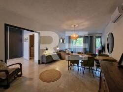 - une cuisine semi séparée toute équipée,