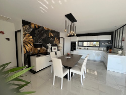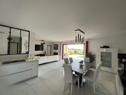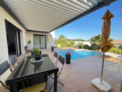 Nimes , secteur ouest, à proximité de Castanet, découvrez cette magnifique villa de plain-pied construite en 2021 sur un terrain de 620 m2. Un havre de paix parfait pour ceux cherchant confort et modernité. Cette maison de 121m2 habitables comprend une spacieuse pièce à vivre de 52m2 avec cuisine ouverte alliant élégance et convivialité. Cet espace de vie donne accès à une jolie terrasse équipée d'une pergola bioclimatique avec une vue imprenable sur la piscine et le jardin paysagé. La maison se compose d'une grande suite parentale avec salle de douche ,dressing et wc assurant intimité et confort. Deux autres chambres, un bureau, une salle de bain mixte (baignoire et douche) ainsi qu'une buanderie et un local pour deux roues complètent la villa. Totalement indépendant pour préserver sa tranquillité , bel appartement T2 de 20m2 très bien équipé, parfait pour accueillir des invités , exercer en profession libérale ou générer un revenu locatif. Construction par Maison Guitard,sous garantie décennale et assurance dommages ouvrages.Venez visiter et vous n'aurez plus qu'à vous poser !