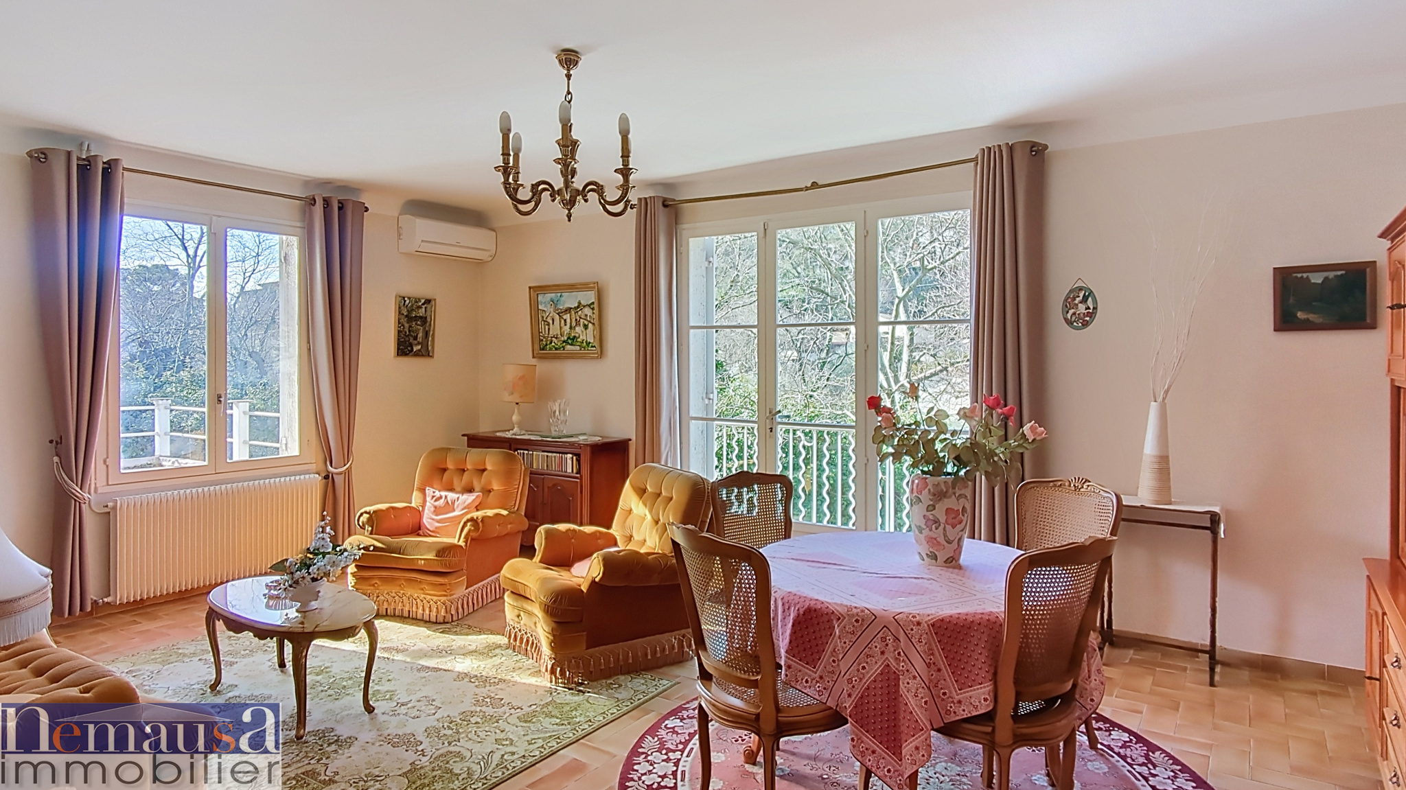 Mélanie NAVARRO de l'agence NEMAUSA IMMOBILIER vous propose cette maison à la vente de type 6 de 151m2 habitable de plain-pied avec véranda, jardin, double garage et piscine sur une parcelle de plus de 750m2. Maison (avec une partie ancienne et une plus récente) de plain-pied comprenant : Une véranda (toujours sous garantie décennale) ouverte sur une cuisine aménagée. Une chambre actuellement utilisée comme bureau/salle de sport entièrement refaite. Un salon/salle à manger avec insert fonctionnel et climatisation réversible. Un couloir desservant une salle de bains avec fenêtre refaite, un dressing, un WC séparé avec fenestron et trois chambres. Prestations supplémentaires : Isolation projetée des combles. Double vitrage sur l'ensemble de la maison. Fibre installée. Extérieur : Un abri isolé et doublé. Un double garage indépendant. Une chaufferie abritant le forage. Une terrasse avec pergola donnant sur une piscine au chlore (8 x 4 m). Accès et équipements : Double entrée. Panneaux solaires sur le toit avec revente exclusive de l'énergie (environ 2 000 EUR/an), contrat en cours de 2011 à 2031. Pour plus d'informations ou une visite, contactez Mélanie NAVARRO au 06.35.48.15.23. Ne tardez pas, ce bien ne restera pas disponible longtemps ! Nemausa Immobilier, 3 agences spécialisées sur Nîmes et sa région, Transactions, Locations, Gestion Locative, maisons, appartements, terrains, locaux commerciaux & fonds de commerce. Siret 819500380, CPI 30022016000006029, enregistrée au RCS de Nîmes. Les informations sur les risques auxquels ce bien est exposé sont disponibles sur le site Géorisques : www.georisques.gouv.fr.