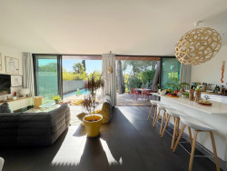 En exclusivité - QUARTIER TOUR MAGNE, NÎMES Un bien unique, rare sur le marché, au coeur du secteur le plus prestigieux de Nîmes. Nichée dans le très recherché quartier de la Tour Magne, cette villa d'architecture californienne de 160 m2 de plain-pied, construite en 2011 et entièrement rénovée en 2019, offre un style de vie incomparable mêlant design, modernité et nature. Un concept architectural exceptionnel : L'accès se fait directement sur le toit de la maison, avec un parking privatif de 160 m2 au niveau de la rue -- une configuration rare et pratique. En contrebas, la maison s'organise autour d'un patio central vitré de 30 m2, véritable puits de lumière qui distribue tous les espaces. Espace de vie & agencement : Autour du patio, la maison développe des volumes généreux et totalement ouverts vers l'extérieur : Grande pièce de vie lumineuse avec baies vitrées donnant directement sur le jardin et la piscine. Cuisine ouverte, moderne et fonctionnelle, Suite parentale complète avec : salle de bain (baignoire + douche), WC, dressing. Deux chambres supplémentaires, orientées vers une cour anglaise intimiste. Salle d'eau indépendante, WC séparé. L'ensemble offre un cadre de vie fluide, minimaliste et épuré, caractéristique des villas californiennes. Extérieurs d'exception : Sur une parcelle de près de 700 m2, parfaitement pensée : Piscine chauffée au sel 15 × 3 m, idéale pour la nage. Terrasse en IP du Brésil de 200 m2. Espace de détente à l'ombre des pins, véritable havre de fraîcheur. Le tout dans un environnement calme, verdoyant, sans vis-à-vis. Prestations haut de gamme : Chauffage au sol via pompe à chaleur, Vitrage SP10 (haute performance), Ballon thermodynamique, Système audio intégré, Système d'alarme, Arrosage automatique, Baies vitrées panoramiques, volumes optimisés, rénovation complète récente. Une villa rare, mêlant élégance contemporaine et confort absolu, située dans l'un des quartiers les plus prisés de Nîmes.Un véritable bijou pour amateurs d'architecture et de lieux d'exception.
