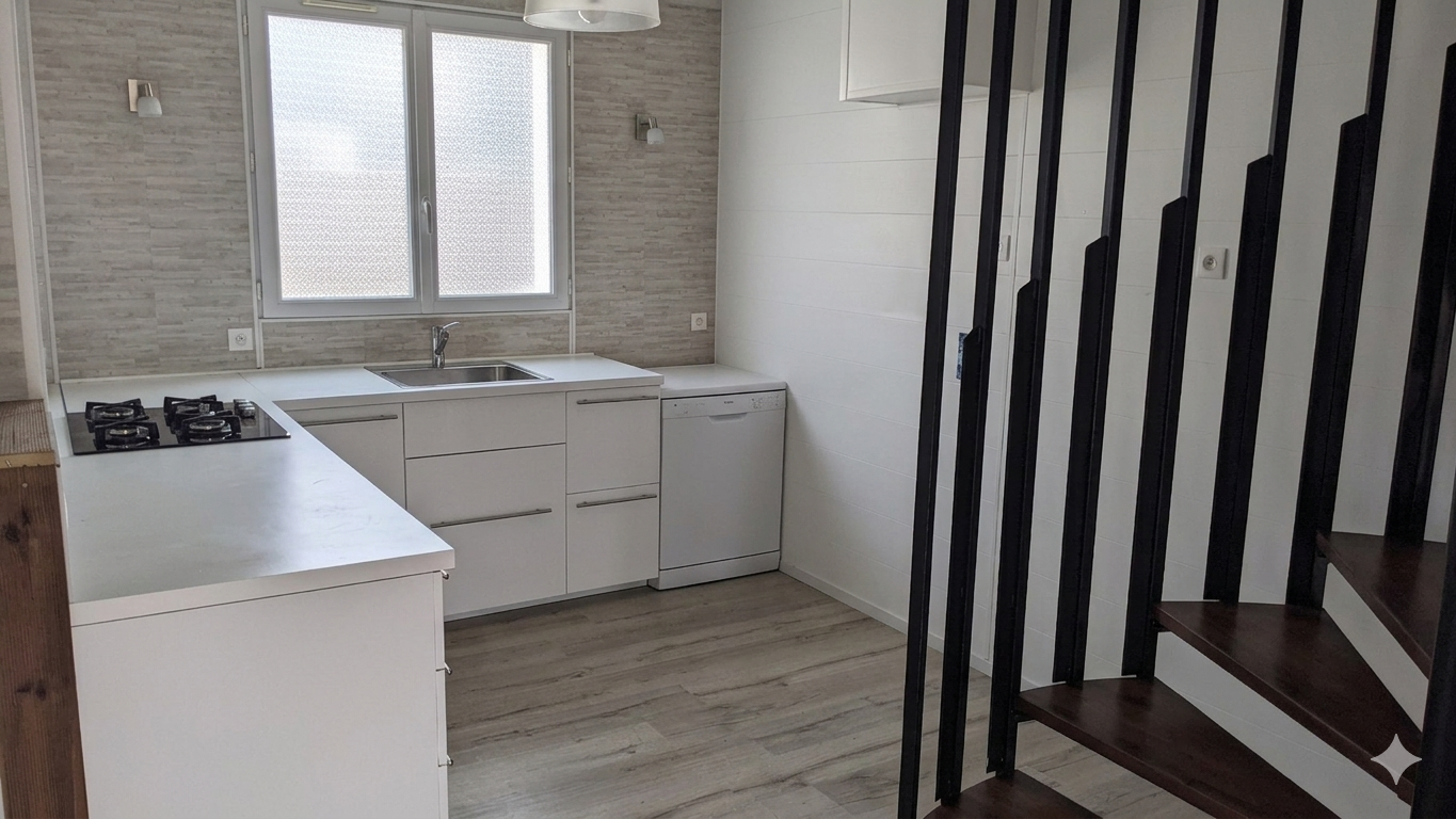 Votre Agence La Nouvelle Adresse vous propose à la vente ce plain pied BBC RT-2012 situé à NIORT quartier de Surimeau. Il comprend : une entrée sur séjour lumineux, une cuisine équipée, 2 chambres avec placards, une salle d'eau, un wc, un dégagement, un cellier. La surface habitable est d'environ 80m2. Le bien dispose d'un garage. Terrain clos d'environ 325m2. Le bien est equipé d'un chauffage au sol par pompe à chaleur et de panneaux solaire pour la production d'eau chaude. Pour caler une visite ou pour plus de renseignement vous pouvez nous contacter au 05 49 04 37 35. « Les informations sur les risques auxquels ce bien est exposé sont disponibles sur le site Géorisques : www.georisques.gouv.fr