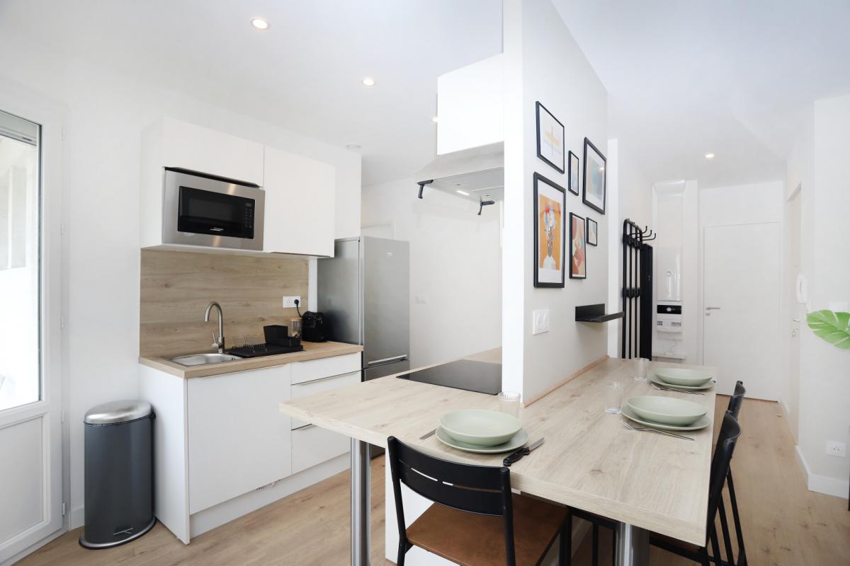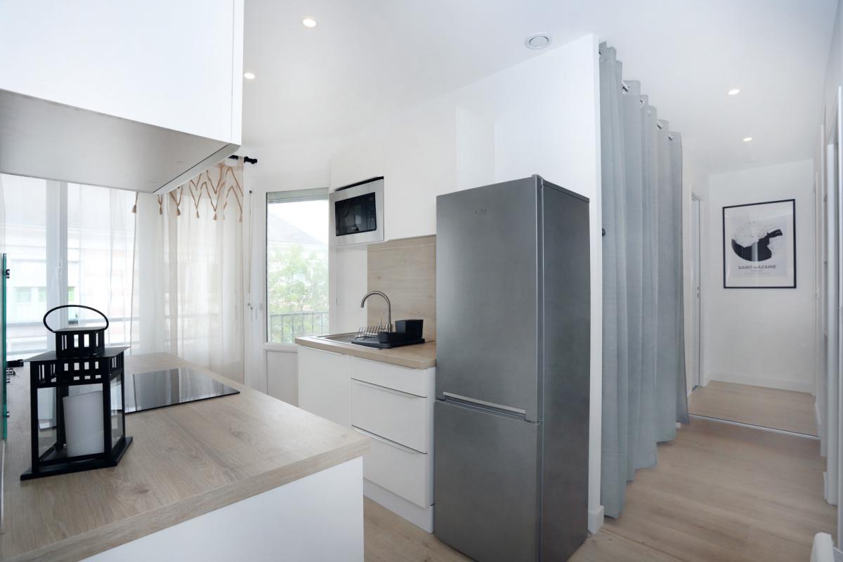 - Cuisine ouverte (Réfrigérateur, micro-onde, four, plaque induction)