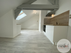 Bel appartement entièrement rénové de 40m2 Loi Carrez (62m2 au sol), au dernier étage, comprenant : une cuisine équipée (plaque de cuisson, hotte, et four) ouverte sur séjour, une chambre, un bureau, une salle de bains et un WC séparé. Chauffage individuel électrique. Disponible dès maintenant ! Loyer : 480EUR + 30EUR de provisions sur charges avec régularisation annuelle Dépôt de garantie : 480EUR Honoraires à charge locataire : 384EUR dont 120EUR pour l'état des lieux. Possibilité de les régler en 3 fois sans frais!