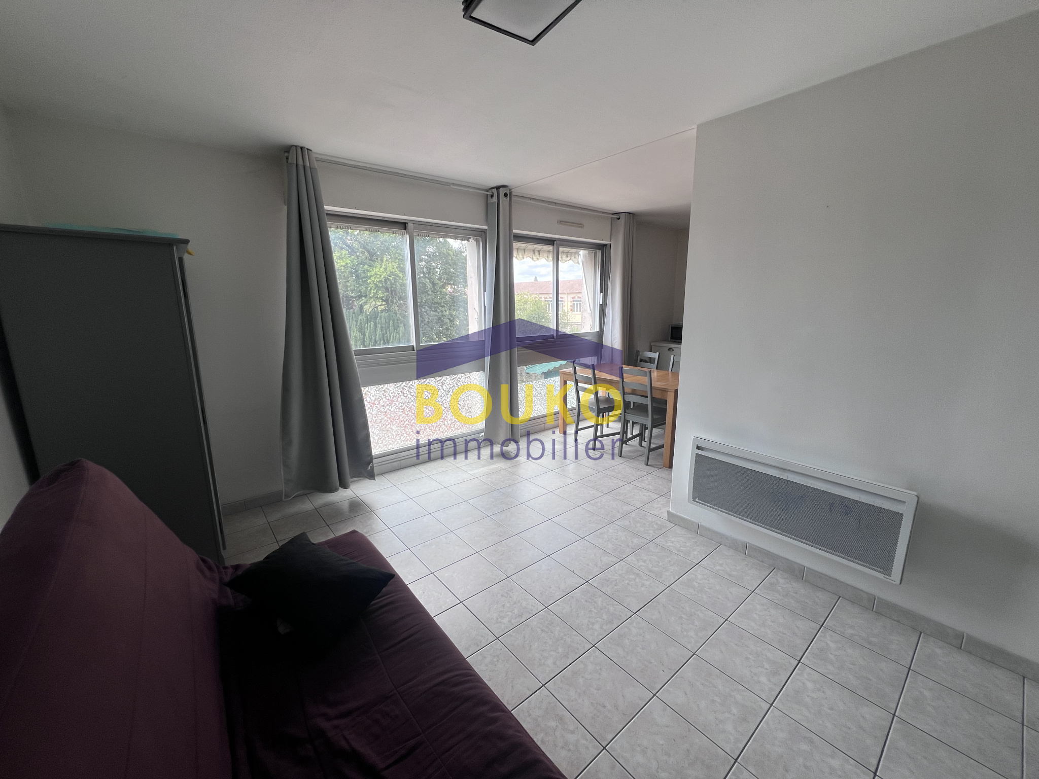 Studio de 27m2 meublé, situé au 2ème et dernier étage, comprenant : entrée avec placard, cuisine équipée (plaque de cuisson, hotte, four et réfrigérateur combiné) ouverte sur pièce de vie, salle de bains avec WC. Chauffage individuel électrique. Disponible mi avril ! Loyer : 395EUR + 25EUR de provisions sur charges (eau, taxe ordures ménagères, électricité des communs) Dépôt de garantie : 790EUR Honoraires à charge locataire : 316EUR dont 80EUR pour l'état des lieux. Possibilité de les régler en 3 fois sans frais!