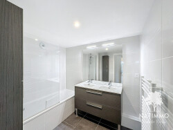 Cet appartement est vendu avec 2 parkings privatifs au sous-sol de l'immeuble. Résidence de grand standing,. Belles prestations: Chauffage gaz au sol, grandes baies vitrée, beau parquet stratifié dans les chambres, sèches-serviettes dans les salles d'eau, receveur extra-plat, porte palière à âme isolante équipée d'une serrure de sécurité à 3 points, volets roulants électriques et station domotique, Bacs à plantes sur la terrasse, store électrifié.. RÉSIDENCE SÉCURISÉE: avec digicode et commande d'ouverture par vidéophone depuis chaque appartement