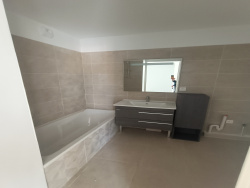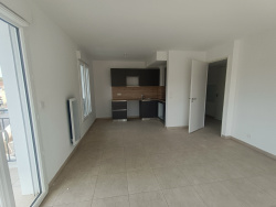 1208- COGOLIN - Au 02ème ET DERNIER étage avec ascsenseur Appartement T3 neuf de 63.14m2 comprenant une entrée avec placard, un séjour avec cuisine aménagée et équipée ( plaque et hotte ) ouvert sur une terrasse exposée Sud Ouest de 18.83m2, 2 chambres (12.30m2 et 9.18m2), une salle de bains et un WC indépendant 2 places de stationnement privatives Loyer mensuel : 996EUR Provision mensuelle de charges :115EUR Dépôt de garantie : 996EUR