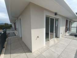 1208- COGOLIN - Au 02ème ET DERNIER étage avec ascsenseur Appartement T3 neuf de 63.14m2 comprenant une entrée avec placard, un séjour avec cuisine aménagée et équipée ( plaque et hotte ) ouvert sur une terrasse exposée Sud Ouest de 18.83m2, 2 chambres (12.30m2 et 9.18m2), une salle de bains et un WC indépendant 2 places de stationnement privatives Loyer mensuel : 996EUR Provision mensuelle de charges :115EUR Dépôt de garantie : 996EUR