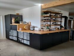Grand garage (90 m2) avec l'ancien four de l'atelier de la saboterie transformé en cave.