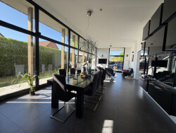 Grand hall réservant un salon/séjour de 80 m2, cuisine équipée avec terrasse, un bureau et deux grandes chambres chacune dotées d'un dressing et d'une salle d'eau. A L'étage une troisième chambre avec dressing et salle d'eau ; suivi d'une suite parentale avec baignoire et une terrasse privative. Double vitrage, porte de garage motorisée, portail automatique, éclairage extérieur, aspiration centralisée, cheminée, piscine intérieure chauffée, nage à contre courant, (pompe à chaleur), Pool house avec douche, fibre, VMC, fenêtres oscillo-battantes.