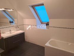 A l'étage (dalle béton), le palier dessert 3 belles chambres ainsi qu'une salle de bain avec meuble vaque, baignoire et douche.