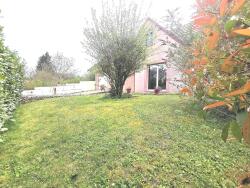 Un garage double complète avec une porte d'accès à la terrasse et jardin . Jardin clos et arboré