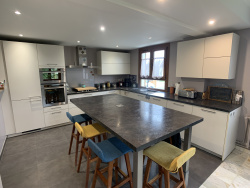 Armentières en Brie, à 10 min de la gare de Trilport et à 15 min de Meaux, Maison de 184m2 habitables sur deux niveaux comprenant : Au rez-de-chaussée : Entrée, vaste salon de 50m2 avec une belle cuisine américaine, chambre, salle de sport, wc, véranda de 40m2, grand garage. A l'étage : 5 Chambres, un bureau, deux salles d'eau, wc. Le tout sur une parcelle arborée de plus de 1000m2. Les derniers travaux effectués : Véranda en 2015, Chaudière changée en 2018, Isolation des combles en 2019, Isolation du vide sanitaire en 2020, Poêle à granules et vmc double flux en 2022.