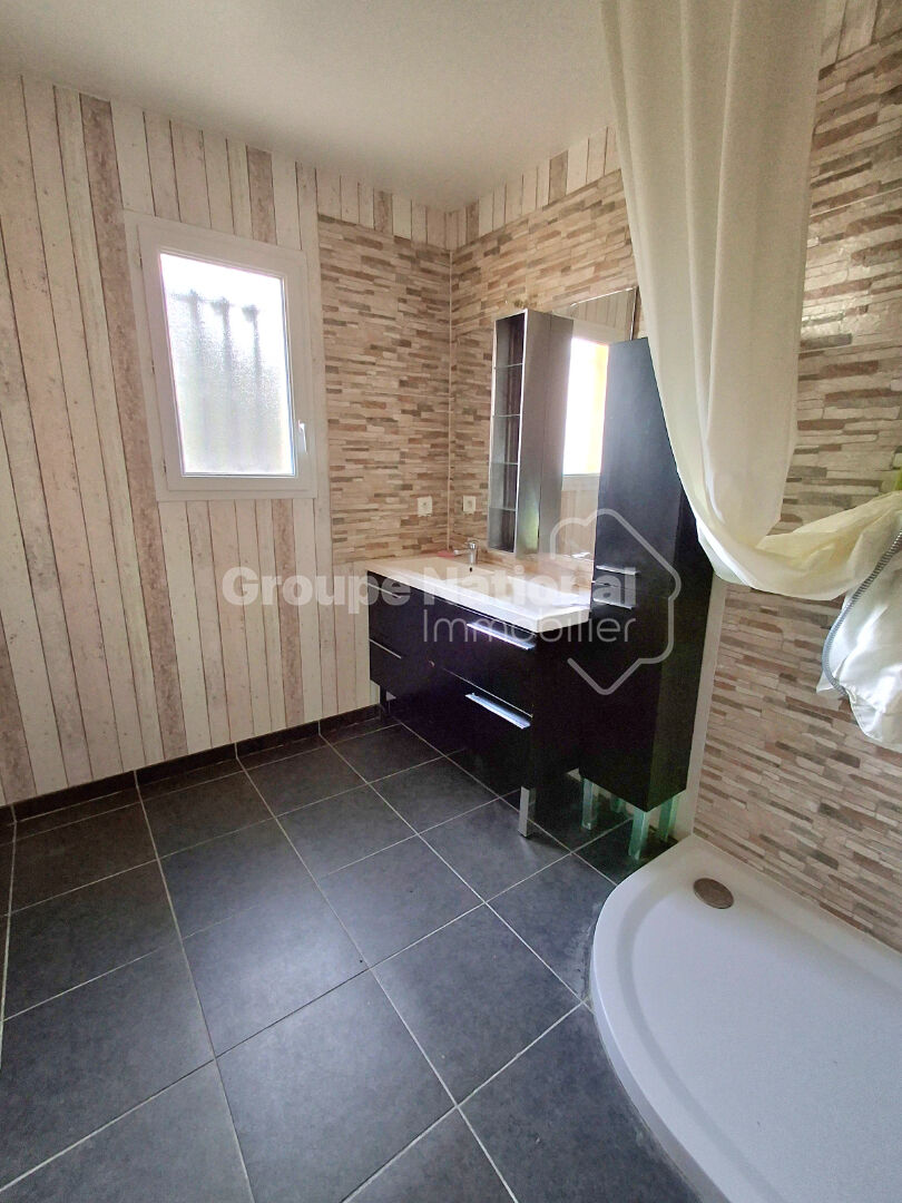 A l'étage on retrouve un hall desservant 3 chambres avec rangements, un espace bureau et une salle de bain avec baignoire et WC intégrés.