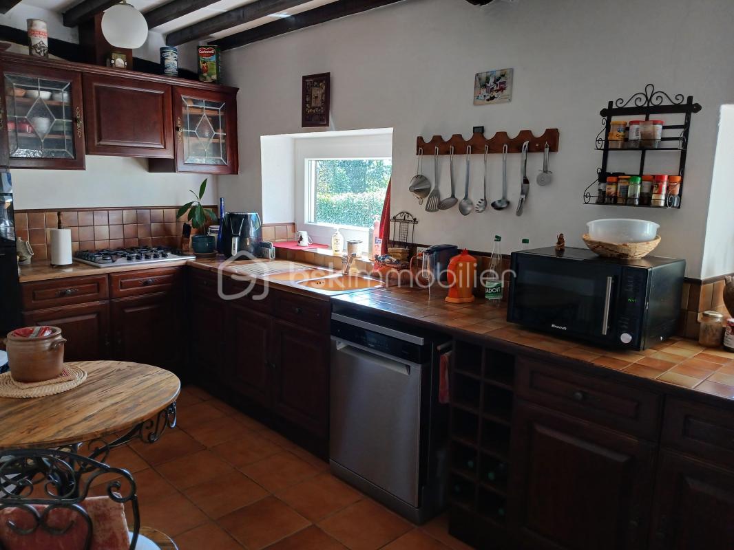 À l'intérieur, la maison de 125 m² propose en RDC une agréable pièce de vie avec cheminée, une cuisine récente ouverte aménagée et équipée, une véranda servant actuellement d'espace enfant, un WC.