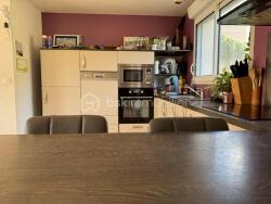 Cette charmante maison contemporaine de 2016, d'une superficie de 112,73 m² sur un terrain d'environs 4800 m2 environs, vous accueille avec une belle pièce de vie baignée de lumière grâce à son exposition Ouest, un insert chaleureux, et une cuisine entièrement aménagée.