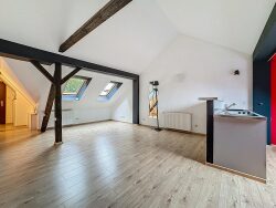 Comprenant une entrée, un WC séparé, un grand séjour lumineux avec hauteur cathédrale incluant une cuisine US équipée, le tout sur près de 40 m² au sol, une chambre confortable, une salle de bains avec douche d'angle et baignoire, une seconde pièce dressing / bureau.