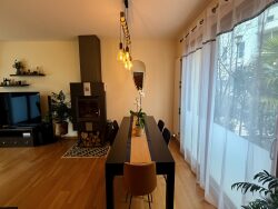 - Entrée avec placard et WC indépendant - Cuisine équipée et aménagée - Séjour / salle à manger avec cheminée insert - Une chambre - Salle d'eau - Buanderie avec accès direct au garage