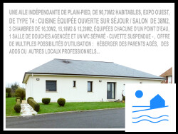 CETTE PROPRIÉTÉ TOUT CONFORT,composée d'une 1ere partie sur 2 niveaux Type T6 dont une cuisine U.S. ouverte sur Séjour/Salon de 85m2 ( !!! ) et d'une 2eme partie indépendante en L, type T4 DE PLAIN-PIED permet d'héberger parents, amis ou local professionnel.