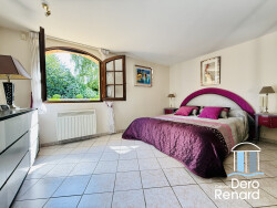 Dans une rue à deux pas des commerces, écoles et transports, cette maison lumineuse d'environ 200 m² offre un cadre de vie paisible et optimisé. Derrière un portail électrique, le joli jardin clos et magnifiquement entretenu exposé plein sud accueille plusieurs stationnements, un double garage, un bûcher et une dépendance. Le rez-de-chaussée s'organise autour d'une vaste séjour/salon/salle à manger traversants avec cheminée et poutres apparentes, cuisine aménagée et équipée ouverte, une grande chambre avec salle de douches, toilettes invités et nombreux rangements. La maison est entourée par une vaste terrasse en marbre de 200 m². À l'étage : cinq chambres avec placards et volets électriques, salle de bains avec WC. Prestations de qualité, nombreux placards, volets électriques, store banne, double vitrage, terrain de pétanque : une maison très bien entretenue et un magnifique jardin paysager offrant de très beaux arbres et de superbes fleurs.