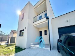 Villa contemporaine 2025 avec piscine 144 m² Terrain 430 m² Semi plain-pied 5 chambres Dommage ouvrage Libre immédiatement Villa récente construite en 2025, en excellent état, offrant 144 m² habitables sur 430 m² de terrain avec piscine. Les points forts : semi plain-pied (vie possible au rez-de-chaussée), 5 chambres, 2 salles d'eau, 3 WC, menuiseries PVC/alu double vitrage, stationnement intérieur. Cuisine à aménager selon vos envies. Atouts majeurs : frais de notaire réduits et assurance dommage ouvrage. Proche des commodités. Disponible immédiatement. Contactez-nous pour une visite.