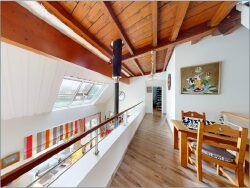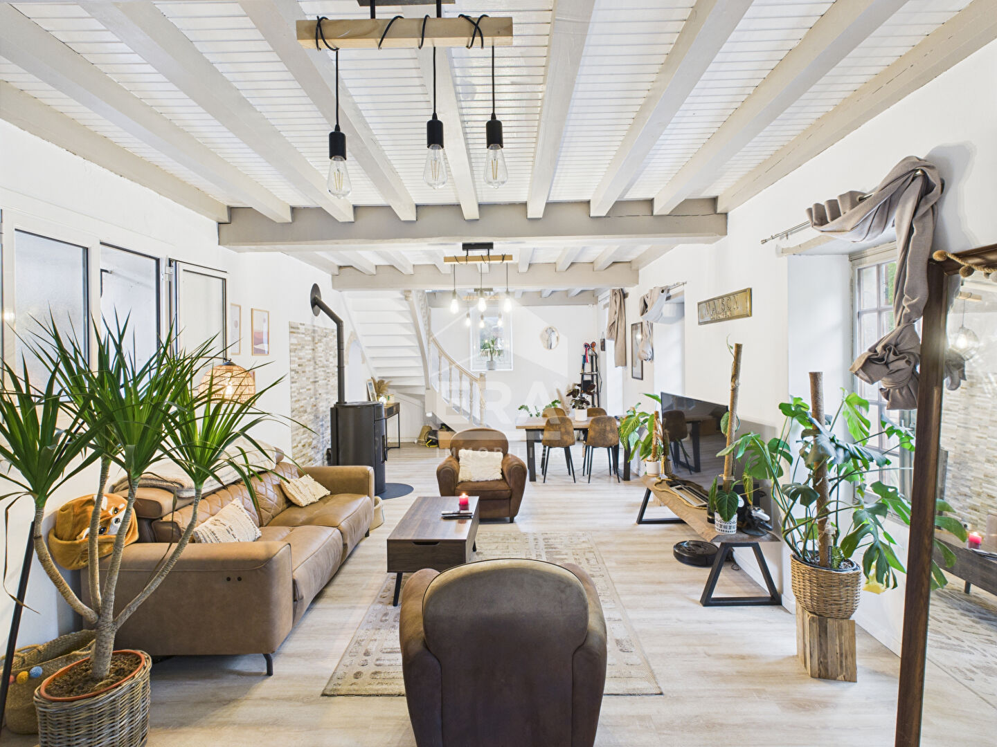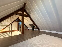 Dès l'entrée, la qualité de construction se ressent : volumes généreux, luminosité omniprésente et finitions haut de gamme. Les pièces de vie, chaleureuses et fonctionnelles, s'ouvrent vers une terrasse abritée qui prolonge agréablement la maison à l'extérieur. La cuisine équipée, le séjour en cathédrale accueillant avec son poêle à bois et les nombreux rangements répondent parfaitement aux exigences d'une vie quotidienne confortable.