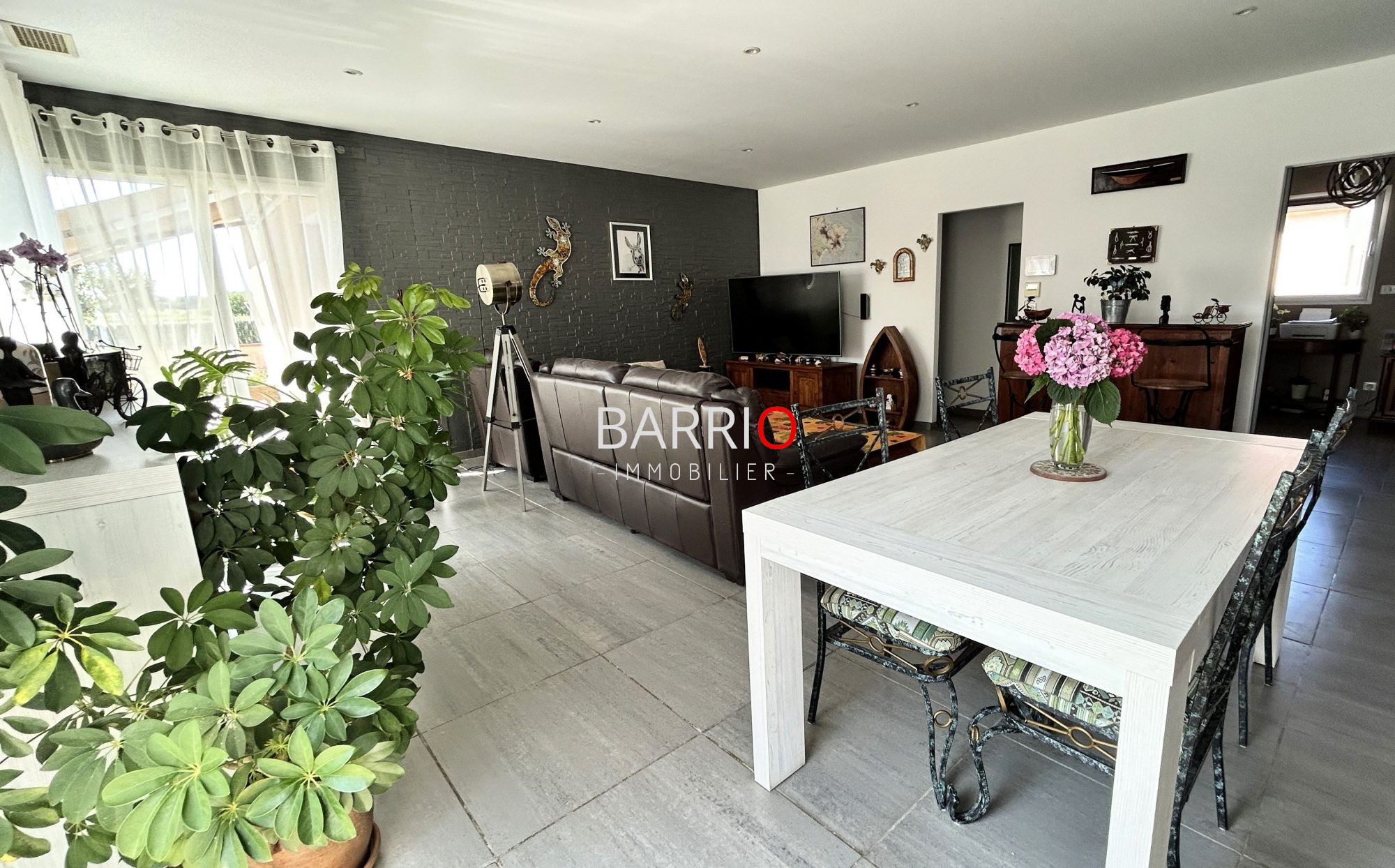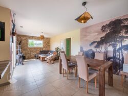 Dès l'entrée, vous serez séduit par une spacieuse pièce de vie baignée de lumière, grâce à de grandes baies vitrées qui offrent un accès direct au jardin et à la piscine. L'espace est chaleureux, moderne, et ouvert sur une cuisine entièrement équipée. La maison se compose également d'un WC séparé, d'un cellier, et d'un garage attenant très pratique. Côté nuit, vous découvrirez une superbe suite parentale avec dressing et salle d'eau privative, offrant confort et intimité. Un couloir dessert ensuite deux autres chambres lumineuses, ainsi qu'une salle de bain indépendante. À l'extérieur, vous profiterez d'un grand jardin parfaitement entretenu, équipé de l'arrosage automatique et d'un portail électrique. La piscine au sel, idéalement exposée, vous invite à la détente dans un cadre naturel paisible. La maison est équipée de la climatisation gainable, pour un confort optimal tout au long de l'année. Située en bout de rue, sans vis-à-vis, cette propriété vous garantit calme, intimité et une vue imprenable sur la nature environnante.
