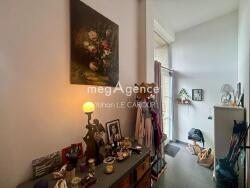 Dès l'entrée, la belle hauteur sous plafond et les grandes baies vitrées offrent une incroyable sensation d'espace et de clarté. L'espace de vie, ouvert et fonctionnel, invite à partager des moments chaleureux. La chambre, agréable et confortable, complète parfaitement ce lieu.