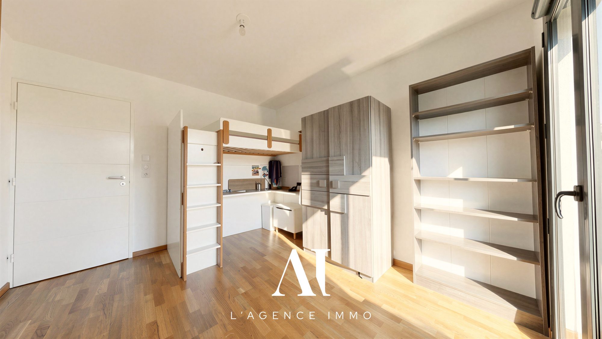 L'appartement se compose d'une entrée avec placard intégré, d'un coin nuit comprenant deux chambres avec rangements, et d'une salle de bain fonctionnelle.
