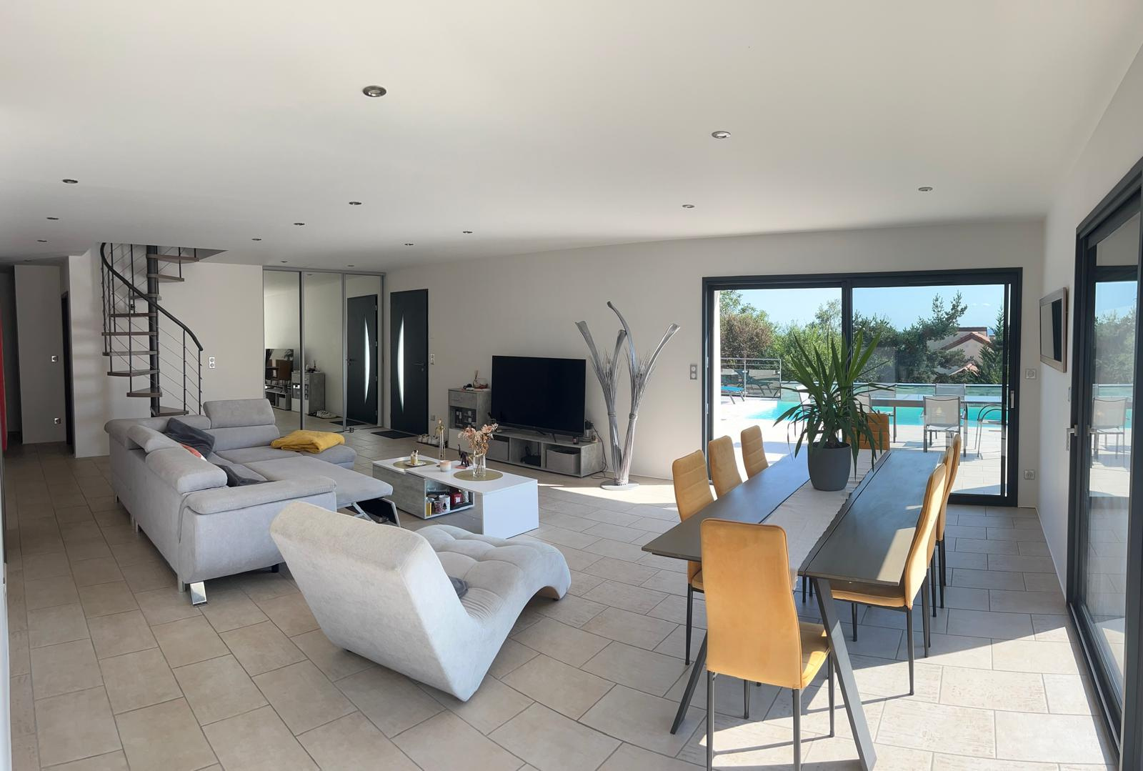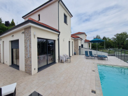 Orléat, 20 min de Clermont et 5min des accès autoroute // Vos Agents vous proposent en exclusivité cette maison d'architecte en ossature bois construite en 2014, 160m2 habitables sur 1500m2 de terrain avec piscine et jaccuzi. Maison d'architecte en ossature bois 160m2 sur 1500m2 de terrain avec piscine et jacuzzi. Venez découvrir cette magnifique maison d'architecte de 150m2 et son terrain de 1500m2 avec piscine et jacuzzi. Construite de plain pied, elle vous propose une entrée desservant la cuisine américaine totalement équipée qui ouvre surle grand salon / salle à manger pour une surface totale de 75m2. Cet ensemble donne sur l'immense terrasse de 150m2 orientée Ouest et agrémentée par une piscine 9X4 couverte et un jacuzzi 3 places. Une autre aile de la maison, consacére à la partie nuit, est composée de deux chambres de 13m2 et enfin de la suite parentale de 24m2 avec salle d'eau privative ouvrant elle aussi sur la terrasse et offrant un accès rapide à la piscine. Une salle de bain avec douche, baignoire et meuble double vasques. Une buanderie 12m2 avec point d'eau et machine à laver. Le terrain de 1500m2 est clos par 2 cotés et arboré. Un garage de 80m2 avec grenier accompagne l'ensemble. Chauffage par pompe à chaleur réversible et poêle à granulés. Huisseries Alu double Vitrage et volets roulants électriques domitisés.Vmc Double Flux. Estimation de votre bien gratuitement en 48 heures, n'hésitez pas à nous contacter, nous avons certainement le client qu'il vous faut ! Les informations sur les risques auxquels ce bien est exposé sont disponibles sur le site Géorisques : www.georisques.gouv.fr PRIX: 560 000EUR Frais d'agence Inclus Votre Agent Emilien 06.65.08.09.80 Agent commercial immatriculé au RSAC de Clermont-Ferrand sous le numéro 841479272 www.vosagents.fr