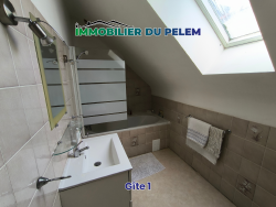 Composition : Maison principale : - au rdc : cuisine, chambre, salon, véranda lumineuse, buanderie, WC et salle de douches. - à l'étage : gîte avec 2 chambres, bureau, cuisine, WC et salle de bains.