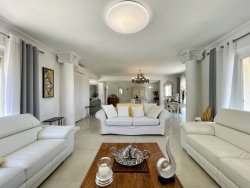 À Vallauris, où les collines murmurent le calme, s'élève une villa entièrement repensée en 2021 dans un style raffiné. Nichée sur un terrain de 2 555 m2 aménagé avec soin, cette propriété de 280 m2 conjugue volumes généreux, lumière naturelle et prestations haut de gamme. Le séjour de 70 m2 ouvre d'un côté sur une terrasse baignée de soleil, de l'autre sur les cimes de l'arrière-pays niçois, avec un aperçu mer en toile de fond. La cuisine américaine, conviviale et élégante, accompagne les instants partagés dans la salle à manger ouverte. Quatre suites vous accueillent, chacune avec leur propre salle d'eau, dont deux bénéficient d'un accès direct à la piscine, véritable coeur bleu de la villa. L'environnement résidentiel assure un calme absolu, sans vis-à-vis. En rez-de-jardin, un appartement indépendant de 80 m2 offre deux chambres supplémentaires, avec deux salles d'eau, et une large terrasse couverte tournant vers un jardin arboré. La propriété bénéficie d'un accès rapide aux établissements scolaires prisés tels que Mougins School. Plusieurs lignes de bus desservent aisément les communes voisines et les pôles scolaires internationaux. Les familles apprécieront également la proximité des clubs d'équitation, des golfs renommés de la Côte d'Azur et des infrastructures sportives variées, offrant un cadre de vie privilégié. À l'extérieur, la piscine 12x5 m avec pool house prolonge les moments de détente. Garage, cave à vin, vidéosurveillance, climatisation réversible, arrosage automatique... ici, tout a été pensé pour combiner confort et sérénité. Contact direct : Lucas 07 61 60 68 90